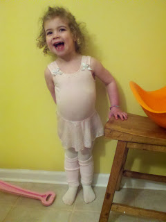 She's at the age where watching the other kids is way more interesting than following the teacher's instruction. This is actually problematic when one of the bad kids decides to run to the middle of the dance floor and do imaginary snow angels. EGB thinks that's funny as hell and goes to join her. Then I have to go out on the floor which makes me feel funny because I don't do ballet and threaten to take away the golden lollipop that's given out at the end of the class. It's quite a production but I'm glad we're doing it. Other than the fact she asks every day to go to dance class and I have to explain that it's only one day a week. That whole time, day of the week thing, isn't translating very well to EGB. It's primal--I like it and I want more now. We'll work it out.